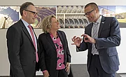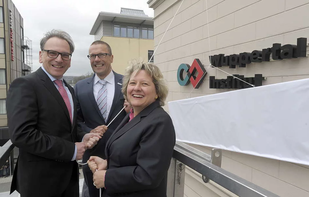 Mit der Enthüllung des neuen Logos an der Fassade des Wuppertal Instituts gaben NRW-Wissenschaftsministerin Svenja Schulze, Wuppertals Oberbürgermeister Andreas Mucke, und der Präsident des Instituts, Prof. Dr. Uwe Schneidewind, den symbolischen Startschuss für das neue Corporate Design des Instituts. Im Jahr seines 25-jährigen Bestehens unterstreicht das Wuppertal Institut damit seine Transformationsorientierung.