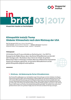 US-Präsident Donald Trump verkündete am Nachmittag des 1. Juni 2017 im Rosengarten des Weißen Hauses, dass er das Pariser Klimaabkommen aus dem Jahr 2015 kündigen wolle. Was bedeutet dieser Schritt der USA für den globalen Klimaschutz? Dieser in brief zeigt, in welcher Weise die an Klimaschutz interessierten Staaten sich am besten organisieren, um das Pariser Klimaabkommen und die globale Klimapolitik erfolgreich weiterzuführen.