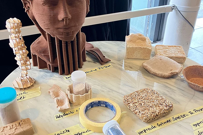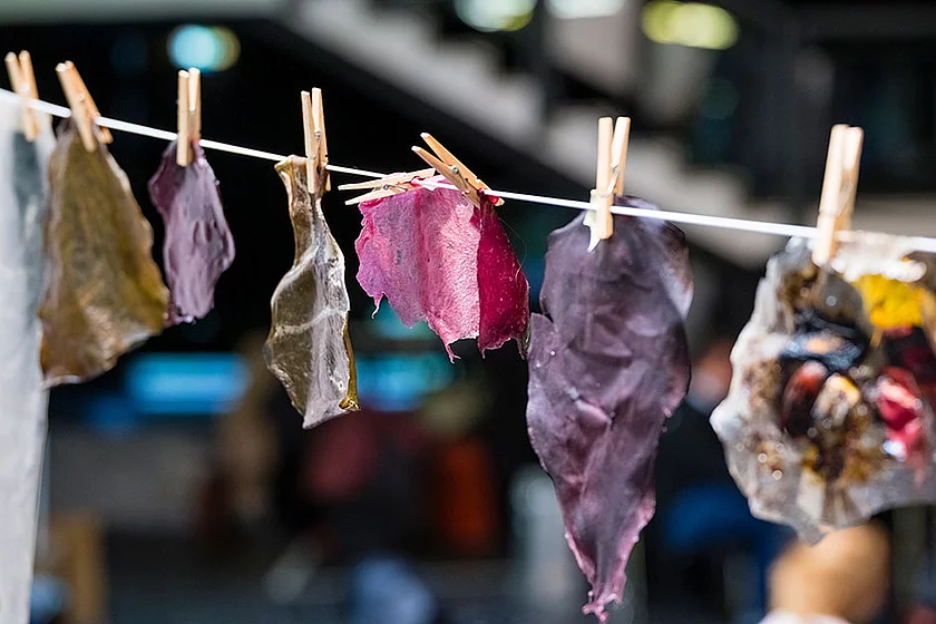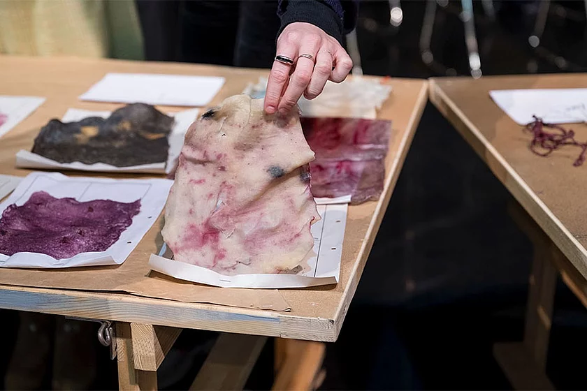 Der zweite Workshop "Something NEW – Neue Materialien" bot im November 2023 eine inspirierende Plattform für den Austausch zu ökologischen Materialien und naturbasierten Farben in der Szenografie. Dabei erkundeten die Teilnehmenden kollaborativ mit Theaterschaffenden sowie Expert*innen aus Kunst, Wissenschaft und Handwerk innovative Biomaterialien. Zur Erarbeitung neuer Visionen und Materialkonzepte wurde im Rahmen des Projektes "Pina Bausch Zentrum als ganzheitlich nachhaltiger Ansatz" die Zukunftsküche im Haus des Wuppertal Instituts in diesem Kontext zur "fabrica" – einem Ort für Workshops, Vorträge, Debatten und Austausch zum Thema Nachhaltigkeit und Kunst. Für die Konzeption der Veranstaltung war der Kostümforscher, Designer und Schneider Urs Dierker verantwortlich. Eröffnet wurde die Woche unter Anderem von Prof. Dr. Christa Liedtke, Leiterin der Abteilung Nachhaltiges Produzieren und Konsumieren am Wuppertal Institut. Zudem ergänzten Dr. Manuel Bickel, Co-Leiter des Forschungsbereichs Produkt- und Konsumsysteme am Wppertal Institut, sowie Dr. Carolin Baedeker und Eva Eiling das Programm durch wissenschaftliche und interaktive Beiträge. Haptisches Ergebnis des Workshops ist ein mobiles Labor – das ACKER Travel Lab.