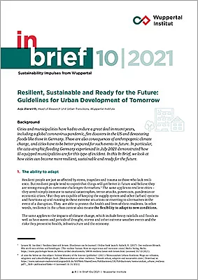 Cities and municipalities have had to endure a great deal in recent years, including a global coronavirus pandemic, fire disasters in the US and devastating floods like those in Germany. These are also consequences of anthropogenic climate change, and cities have to be better prepared for such events in future. In particular, the cata-strophic flooding Germany experienced in July 2021 demonstrated how ill-equipped municipalities are for this type of incident. In this In Brief, we look at how cities can become more resilient, sustainable and ready for the future.