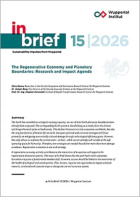 Therefore, new strategies are needed that deliver more than mere damage avoidance. Regenerative economics is one such strategy. A regenerative economy actively contributes to the restoration of ecosystems and supports the regeneration of natural systems. This issue of In Brief shows that the path back within planetary boundaries requires a fundamental mindset shift. Economic success should be linked to the restoration of the health of ecological and social systems. This, in turn, requires new approaches to impact-oriented research, combined with concrete steps to change the current economic system.